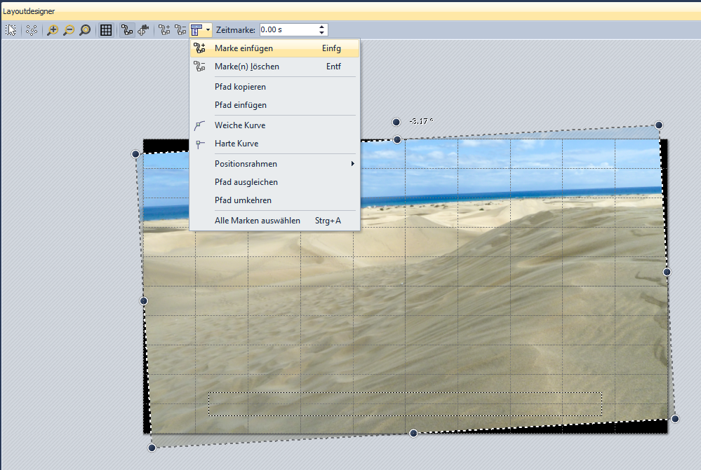 Ich bekomme das nicht hin, habe eine neue Diashow mit einem Bild angelegt. Ein Doppelklick auf das Bild, aber es passiert nichts. Bei einem Rechtsklick auf das Bild sehe ich das selbe Menü wie oben neben der Zeitmarke. Eine Programmeinstellung habe ich auch keine gefunden und das zu aktivieren. Layo...