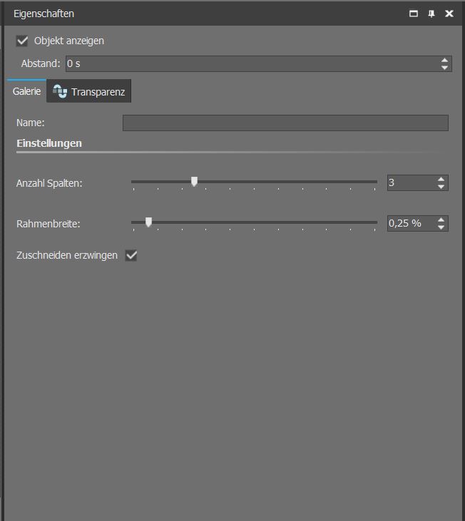 Hier eventuell eine andere Möglichkeit. Ein Kapitel in die Timeline ziehen, als Hintergrund "black" hinzufügen, darunter dann Galerie plazieren. Wenn ein breiterer Zwischenraum gewünscht wird Prozentzahl höher setzen.