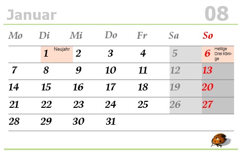wie man es in handelsüblichen Kalendern sieht, zu ändern.