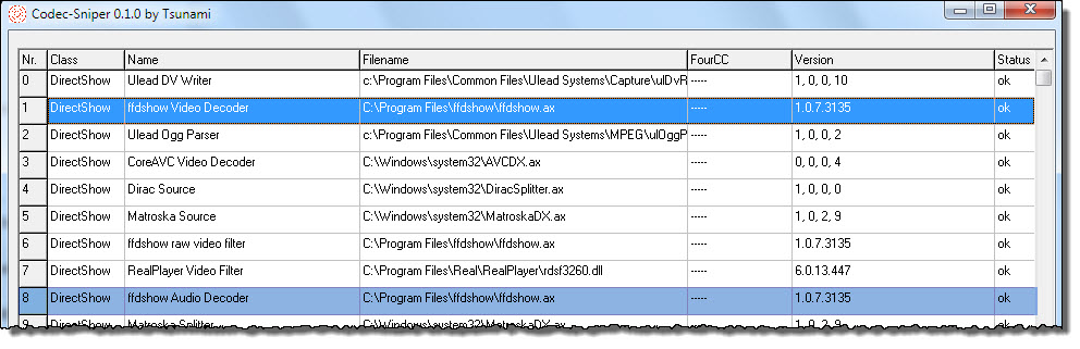 Der eigentlich wichtige Eintrag "ffdshow video codec" fehlt bei Ihnen komplett.