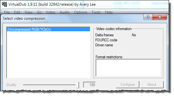 Eventuell haben sie das gleiche Problem wie unter http://forums.virtualdub.org/index.php? ... 78c1742070 beschrieben. Um es zu lösen sind allerdings Änderungen an der Registry notwendig.