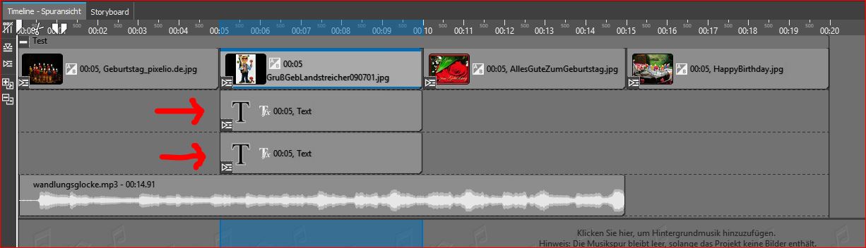 dass alle untenliegenden Spuren - außer der Musik - um die gleiche Zeitlänge per Anwendung verschoben werden.