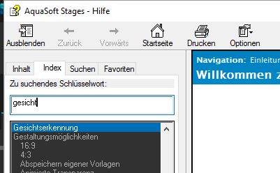 ich weiß ja nicht, wie Sie an die Hilfe gelangen, ich komme dahin über den Menü-Punkt Hilfe | Stages-Hilfe. Und dann erscheint das, wenn ich "Gesicht" bei "Suche" eingebe: