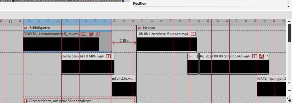 Der Screenshot zeigt in etwa den mittleren Abschnitt der Timeline. Als ich mir jetzt ca. 10 min später das Ende der Show ansehen wollte, waren dort die Videoabschnitte noch immer schwarz.