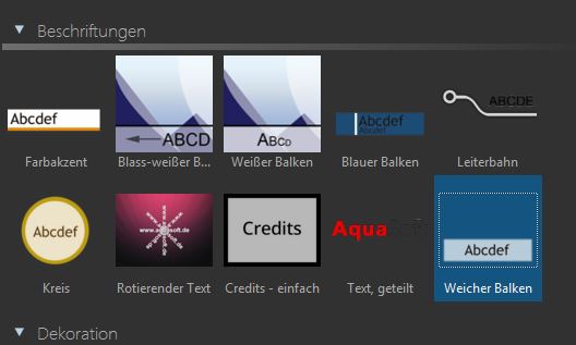 Der "weiche Rand" ist unter "Beschriftungen" bei den Objekten zu finden. Er besteht aus zwei Rechtecken und dann aus den eigentlichen Textspuren. Wenn ich innerhalb dieser Textspuren Variablen eingebe, beziehen sich diese nicht auf das eigentliche Bild sondern auf die Rechtecke. Die alte Form, die Variable direkt dem Text eines Bildes zuzuordnen, kenne ich und funktioniert auch. Allerdings sind da keine Hintergründe möglich. Das Problem sind die separaten "Beschriftungen" (als Kapitel unterhalb des Bildes), die sich meines Erachtens bei den Variablen nicht auf das Bildelement beziehen.