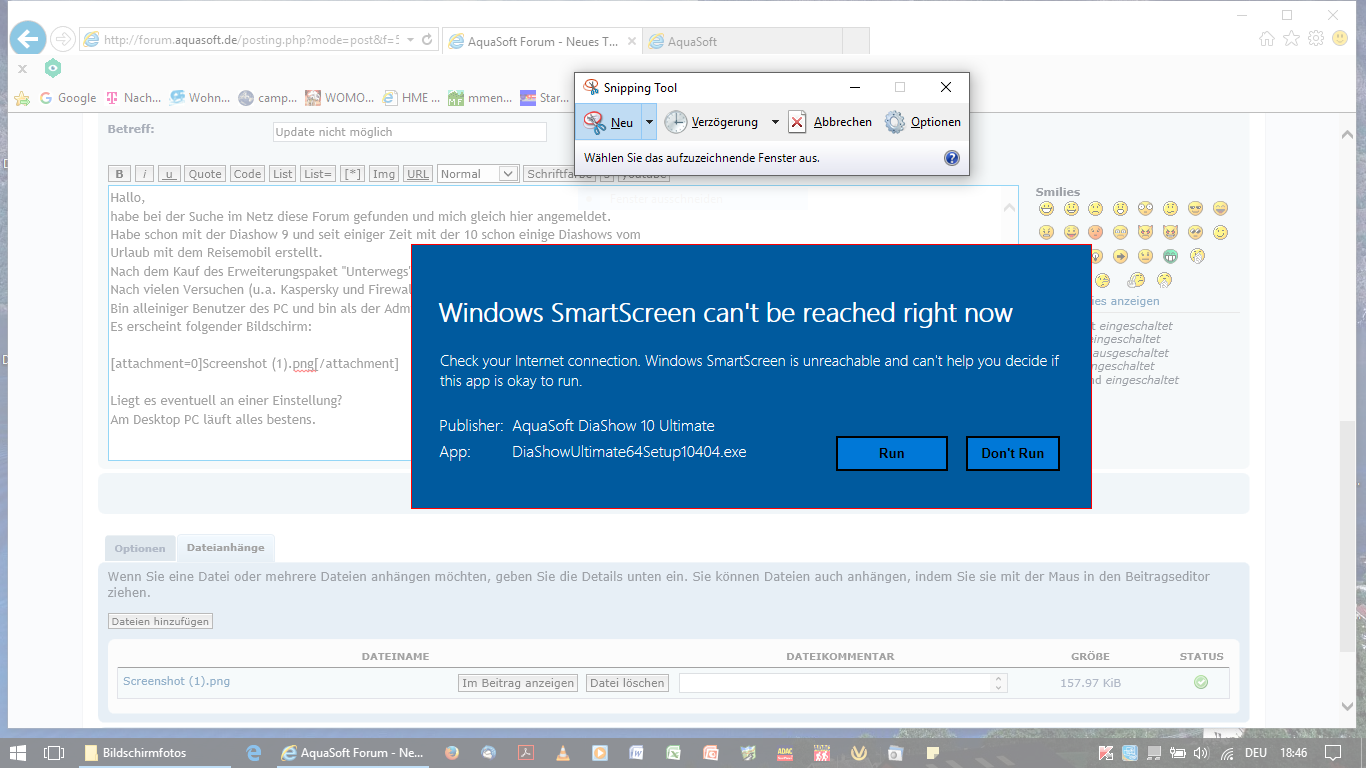 Die Suchergebnisse zum nicht erreichbaren Windows Smartscreen sind auch ziemlich vage.
