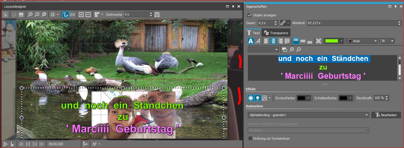 ...aber ich würde gern auch Schatten und Kontur auf einzelne Buchstaben/Wörter anwenden.
