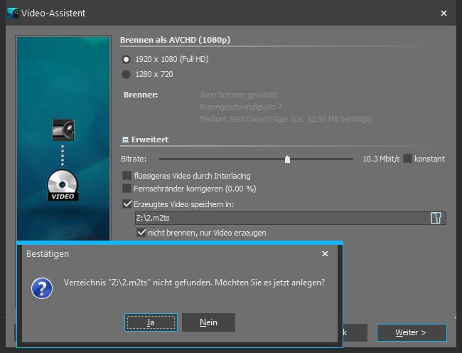 Re: [Erledigt in 10.5.06] AVCHD-Videoerstellung (ohne zu brennen) funktioniert nicht