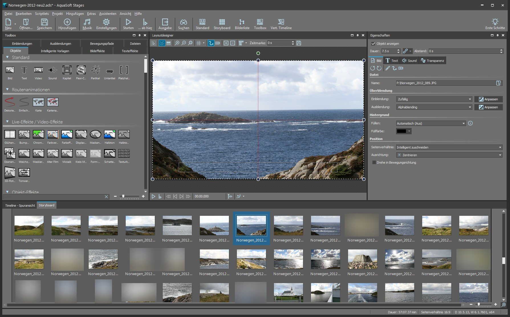 das im Layoutdesigner angezeigte Bild ist im Storybord mit einem blassen Hellblau hinterlegt und damit markiert.