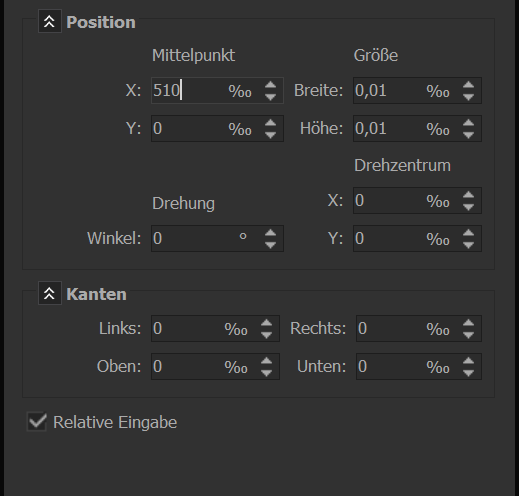 Mit dem Klick springt die die Bildbreite auf den absoluten Wert 0,01% und die Position auf 510%, ebenfalls absolute Position, leicht daran zu erkenne, wenn das Häkchen bei "relative Eingabe" wieder weggenommen wird. Mir erschließt sich nicht so ganz, was da passiert bzw. was dort passieren soll. Logsich ist es aktuell so nicht.