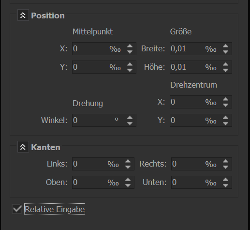 Die Werte werden bei "relative Angabe" angezeigt. Bei Änderung der Werte werden diese nicht angenommen.