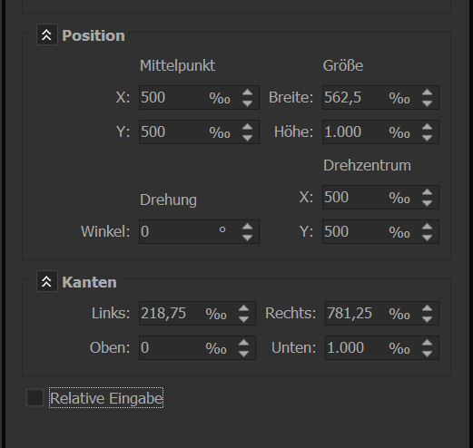 Mit dem Klick springt die die Bildbreite auf den absoluten Wert 0,01% und die Position auf 510%, ebenfalls absolute Position, leicht daran zu erkenne, wenn das Häkchen bei "relative Eingabe" wieder weggenommen wird. Mir erschließt sich nicht so ganz, was da passiert bzw. was dort passieren soll. Logsich ist es aktuell so nicht.