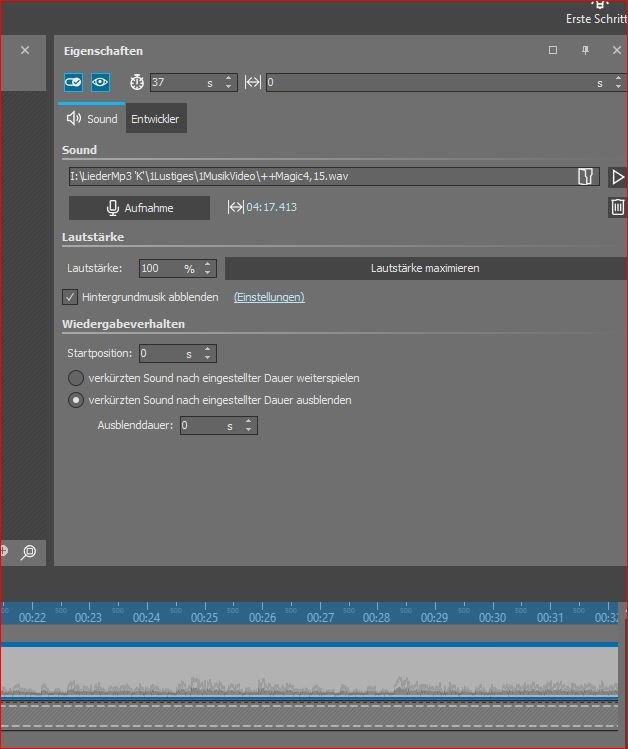 Wenn man ein anderes Objekt anklickt und danach wieder das Sound-Objekt, dann wird der korrekte Wert angezeigt.