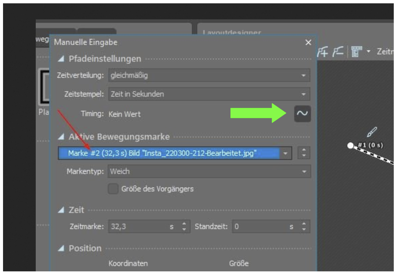 Ich setze einen neuen Punkt bei 15sec auch im Zentrum der Würfelseite