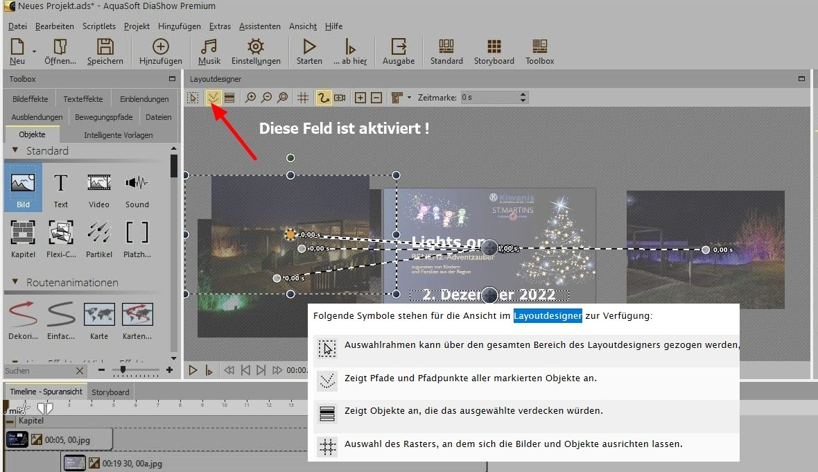 Servus, im Layoutdesigner ist links oben das 2. Feld aktiv, damit werden alle Bewegungspfade angezeigt.
