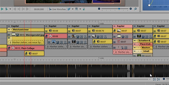 Bei mir geschah zunächst Seltsames, bei der Timeline sah man nur noch verwischte Bilder, nichts mehr von der Struktur der Show. Mit Hin-und Herschieben gelang es mir wieder Ordnung zu machen, aber viele der Bilder waren weg und kamen erst durch das Dateien wiederfinden zum Vorschein.