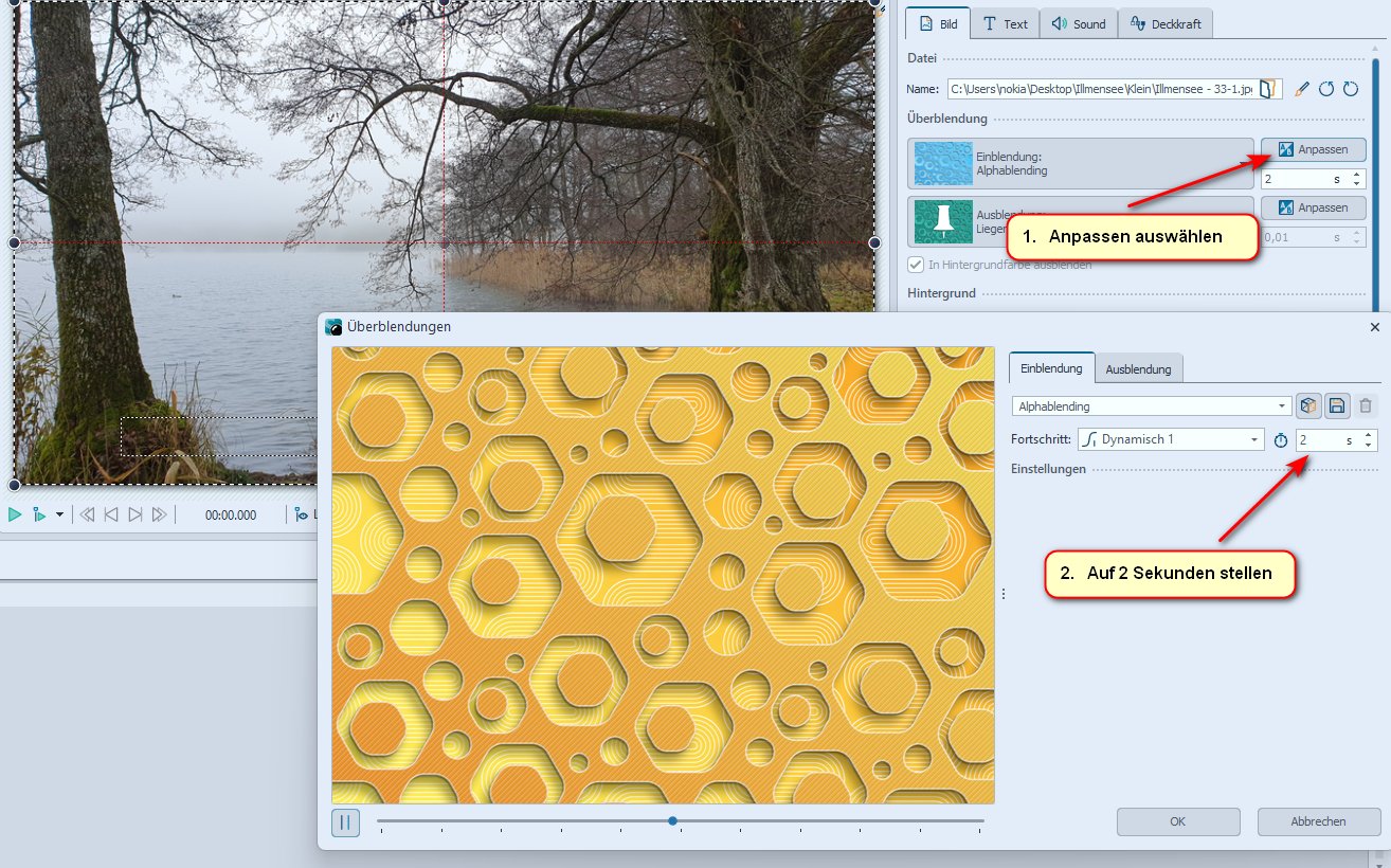 Danach haben alle Überblendungen die 2 Sekunden als Standard.
