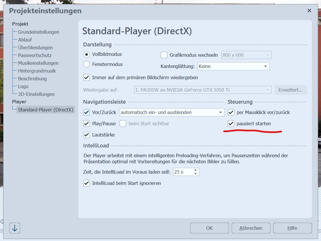 da ich den überwiegenden Teil meiner Shows händisch betreibe, also pausiert starte, nutzt mir dieser Tipp nicht viel. Zusätzlich stört es natürlich auch, wenn man die Show linear abspielt.