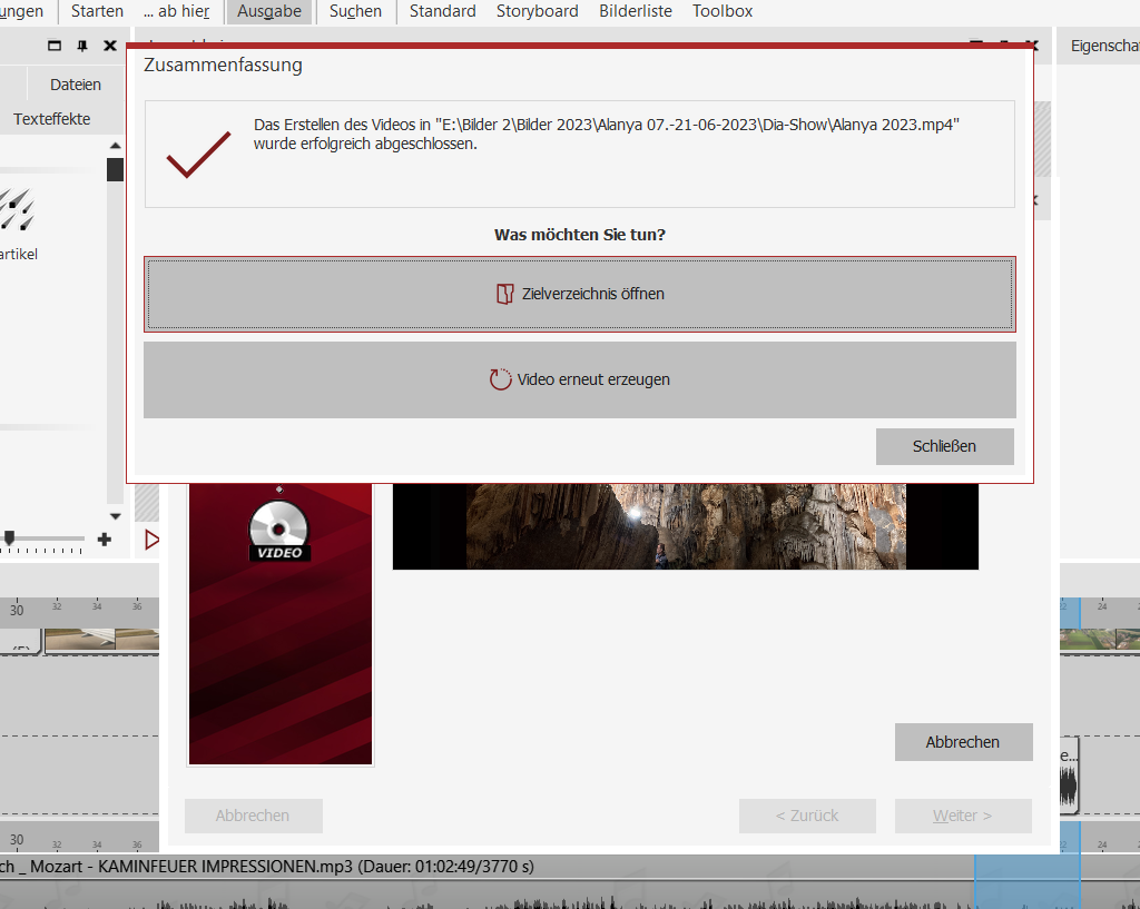 Haben Sie einmal mit einer neuen Programmversion getestet, ob Sie das Video korrekt erstellen können?
