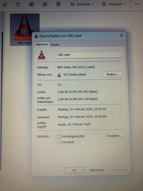 Ich habe jetzt die lange DC in zwei Hälften a ca. 26 min. geteilt und mp4 erstellt und diese Hälften kann ich überall ansehen/verwenden. Nur eben schade, dass ich es nicht anders hinbekomme.