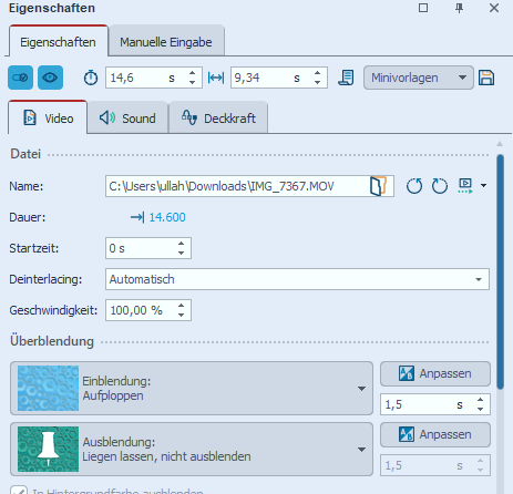 Ich habe eine Problem mit der Abblendung. Ich stelle ein, dass die Bilder und Fotos liegen gelassen werden soll. Mal funktioniert es und mal nicht. Kann mir jemand erklären woran das liegen kann? Ich mache ein Reisevideo. Auf der ersten Spur liegt die Mappe, in der zweiten ist ein Ring um anzuzeigen, welche Ort ich meine und in den folgenden Spuren folgen die Fotos und Videos.