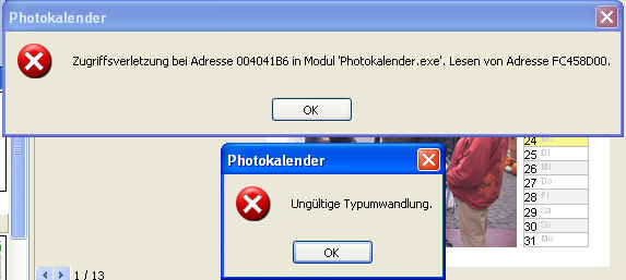 Vorlage auswählen\Vorlage öffnen\ anwähle, bekomme ich folgende Fehlermeldung
