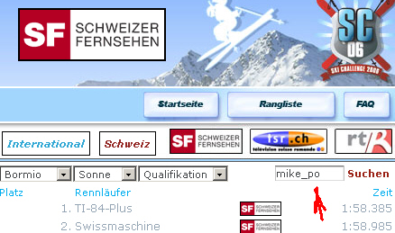 Ich bin schon qualifiziert, es fehlen allerdings noch 15 Sekunden bis zum ersten Platz, die Platzierung wird immer sofot online in Netz aktualisiert, auf diesem Link: http://www2.sfdrs.ch/sfsport/artikel.ph ... 0051118_01