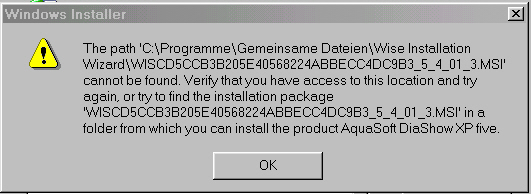 3. XP 5.4.02 läßt sich nich deinstallieren. Ich wollte deinstallieren, um die Betaversion wieder zu benutzen. Weder über das Menue "Deinstallieren" noch über die Windows Systemsteuerung läßt sich das Programm deinstallieren. Folgende Meldung wird angezeigt: