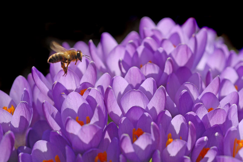 Schönes Foto - 'Tiefflieger über blau/lila' Blütenmeer' .