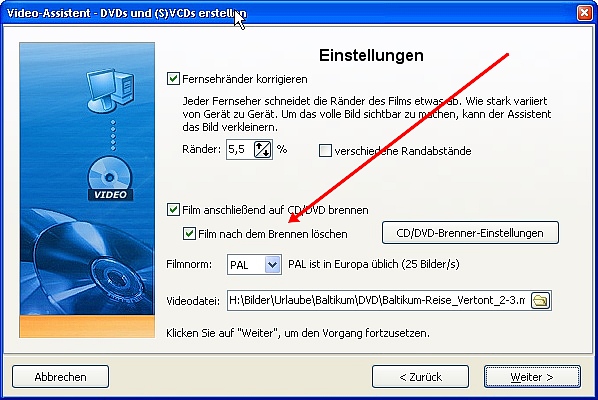 Hallo Klaus,KlaWeLi hat geschrieben:[...] kommt auf der zweiten Seite des Dialoges ein Kästchen, wo Du anhaken kannst, ob der Film nach dem Brennen gelöscht werden soll oder nicht.