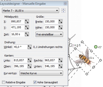 Eine Biene über den Bildschirm fliegen zu lassen. Habe mehrere Marken gesetzt und immer in verschiedene Richtungen, nun wollte ich mit dem Winkel die Gesichtsrichtung anpassen, man kann einen Winkel angeben aber das Bild bleibt trotzdem so stehen.
