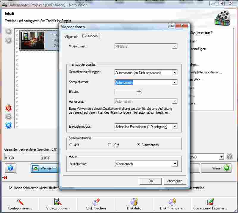 Ich nehme an, du bist über "Film erstellen/bearbeiten" gegangen. Dann kommst Du im Schritt "Video erstellen" an eine Stelle,