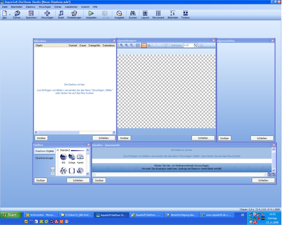 Übrigens die Box „Bilderliste“ lässt sich nur einzeln herstellen, ohne dem Register „Storyboard“.