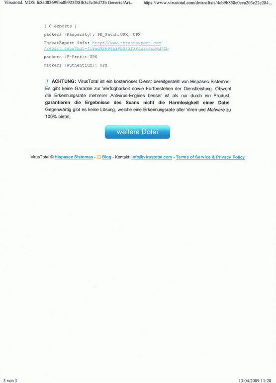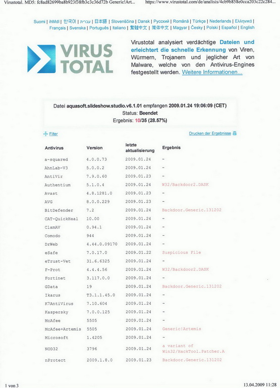 Hier das Ergebnis. AS versendet Viren verseuchte Daten? Ich kanns nicht glauben.
