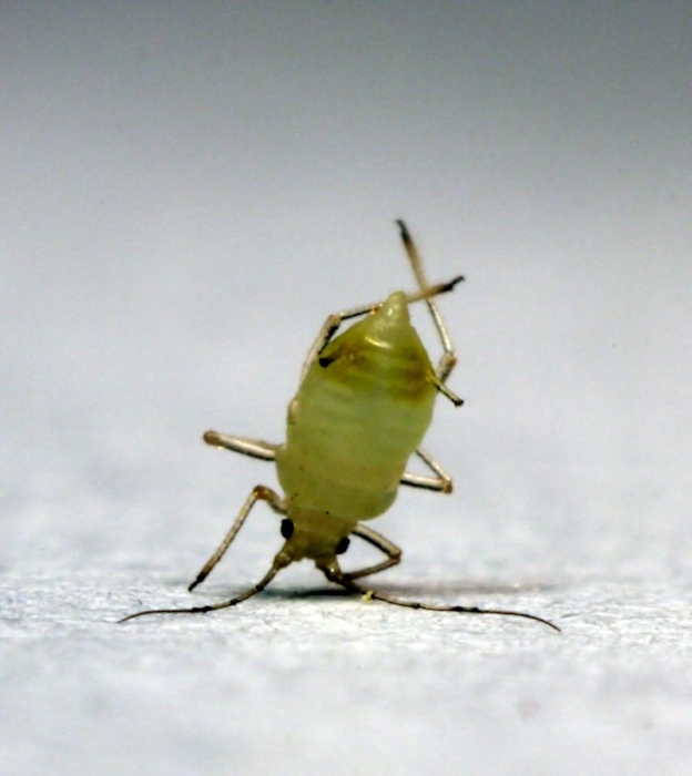 Dieser Blattlaus ist es wohl unter dem Licht des Makro-Pultes etwas zu warm geworden
