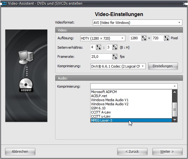 * Über die im DivX-7-Paket enthaltene grafische VfW-Oberfläche können wir ausschließlich DivXASP nutzen.