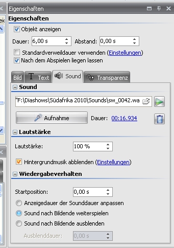 Ich verwende häufig bei den Sounds zu den Bildern die Funktion "Sounds nach Bildende weiterspielen" Starte ich nun die Show mit der Start.exe läuft die Show zwar, aber die Sounds werden nach dem Bildende abgebrochen.