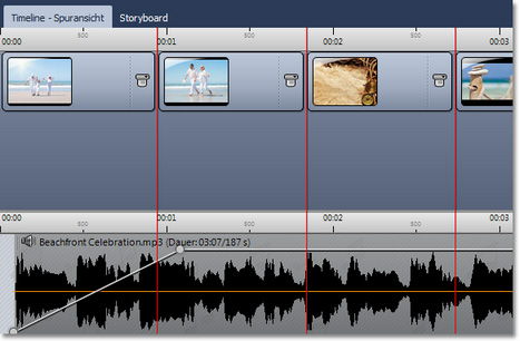 Starten Sie das Abspielen im Layoutdesigner und drücken Sie an den entsprechenden Stellen die Leertaste. Sie erhalten dann eine rote Markierungslinie in der Timeline.