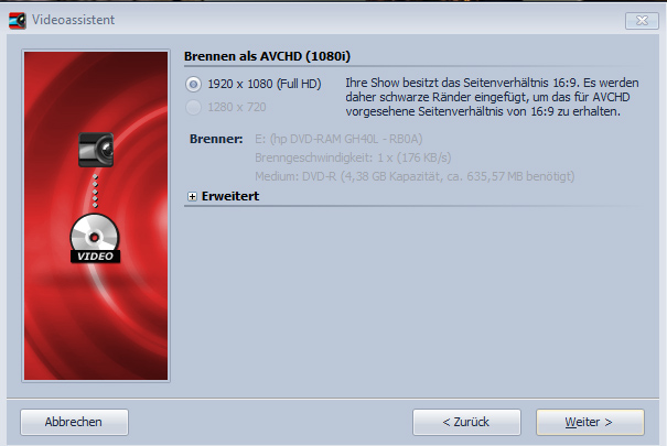 Re: AVCHD-DVD im Format 1280x720 ??