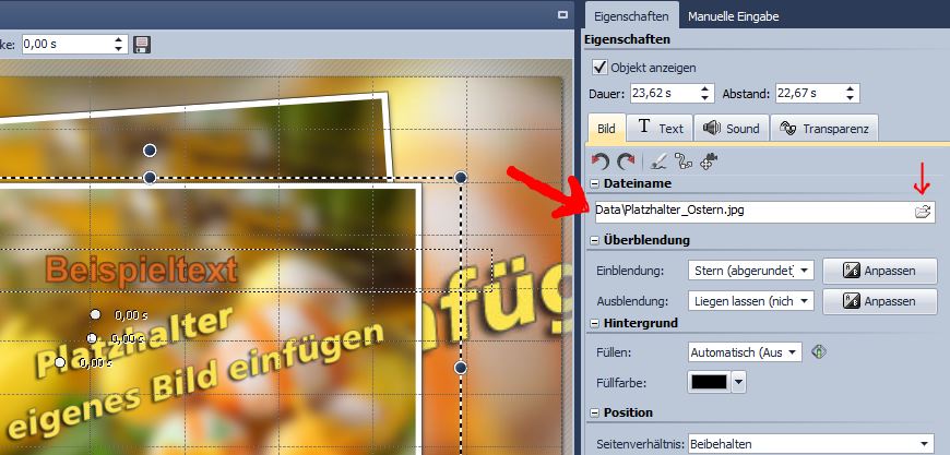 Ich habe mir den "Zeitstrudel2" als Vorlage geladen und finde nicht im Hilfetext, wie ich die Platzhalter gegen eigene Bilder tauschen kann.