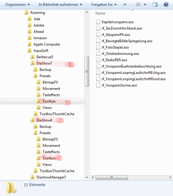 Kerstin Thaler hat geschrieben:Liegen diese Objekte noch unter C:\Users\<anwendername>\AppData\Roaming\AquaSoft\DiaShow7\Presets?