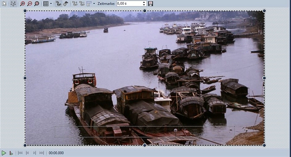 Zuoberst siehst Du, wie das Bild aus der Kamera (oder aus dem Scanner) gekommen ist. Willst Du die schwarzen Streifen weghaben, kannst Du bei den Bildeigenschaften unter Seitenverhältnis "Zuschneiden" anwenden, das Ergebnis siehst Du beim unteren Bild, die schönen Berge sind dann weg. Allerdings wissen die anderen, die sich Dein Video ansehen, nichts von den Bergen, die finden das Foto mit den alten Lastkähnen auch so recht pfundig, Blöd wirds nur bei Kirchtürmen, Minaretten und Wolkenkratzern.