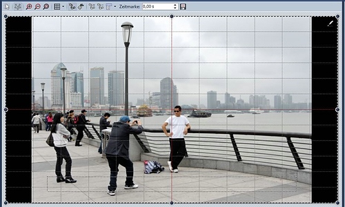 Jetzt hat Franke das Problem, dass man nicht mehr die Größe des alten Kleinbildes sehen kann, und da hab ich ihm erklärt, dass ein Klick auf das Kamerasymbol genügt, um wieder das 3:2 Bild anzuzeigen, in dem jetzt zwei schwarze Querlinien zu sehen sind. Innerhalb diere Querlinien kann man nun das 16:9 Bild auf und abschieben.