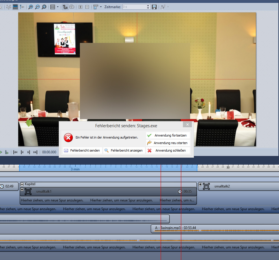 Werni hat geschrieben:Versuche z.Z. eine Diashow zu erstellen, bei der es immer wieder zu Abstürzen kommt. Ein ordentliches arbeiten ist einfach nicht möglich.