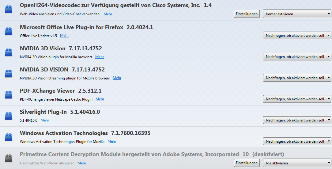 "Primetime Content Decryption Module hergestellt von Adobe Systems, Incorporated" ersetzt wurde.