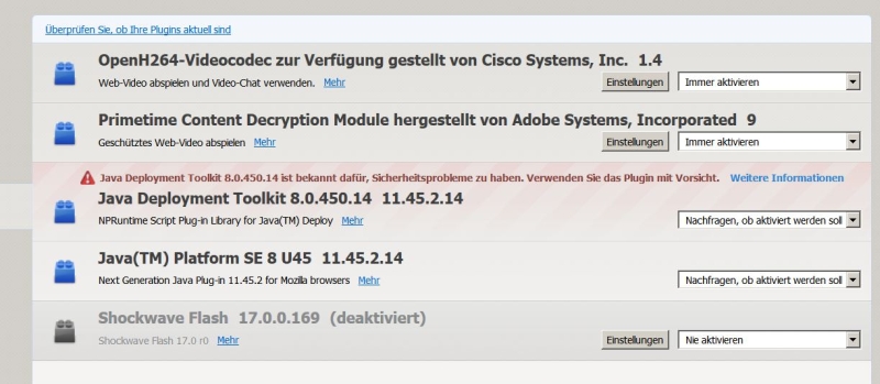 Ein nur deaktivierter Flash-Player versucht immer sich dazwischenzudrängen.
