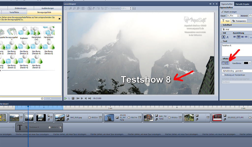 In der DiaShow 8 sind nun Ein- und Ausblendungen hinzugekommen, die ein echtes 3D-Gefühl erwecken. Der alte "3D"-Texteffekt wird dem nicht mehr gerecht.