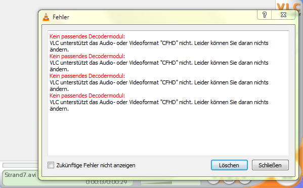System passiert, auf dem dieser Codec nicht existiert:
