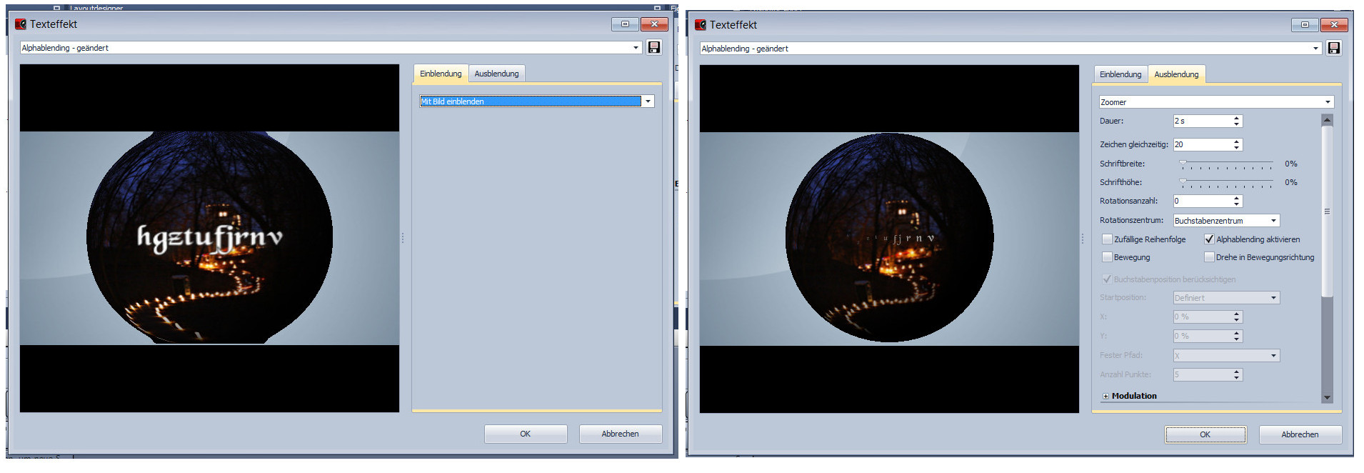Da man in der Diashow 9 mit Hilfe des Objekteffektes "Überblendung" ja jetzt erstmals recht bequem Auf- und Abblendung kombinieren kann, finde ich das eine echte Funktionslücke