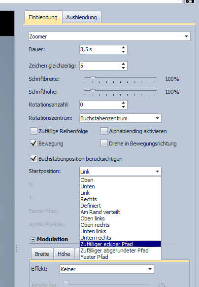 ...Eigenschaften/Text/Effekt/Bearbeiten/Einblendung/Startposition
